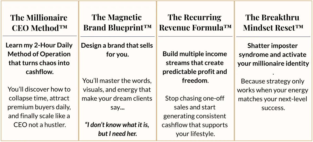 If you love this training, you’ll get early access (and the lowest price) to continue the journey with me for these three days of implementation and results.